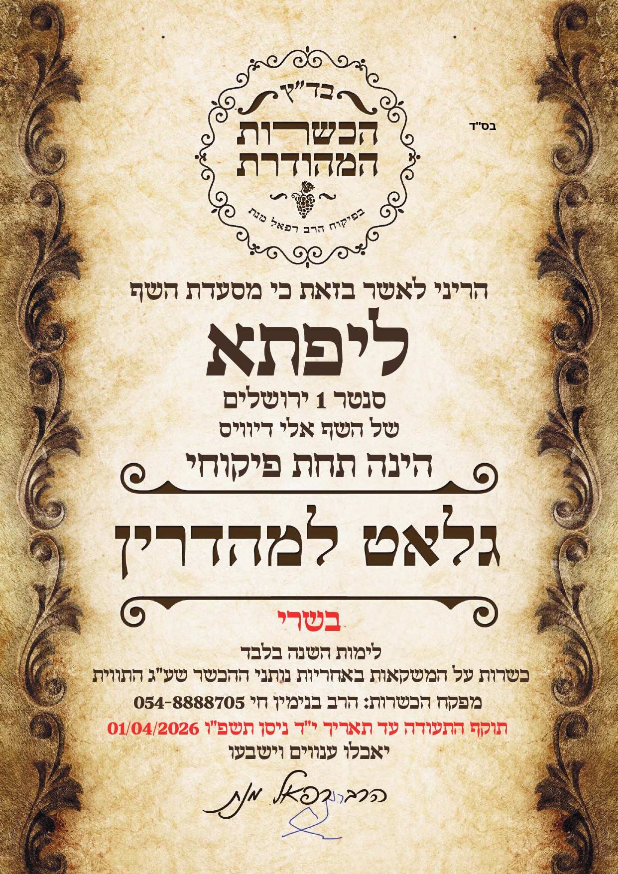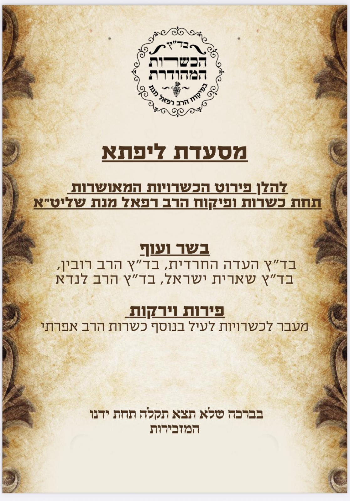 בפיקוח הרב רפאל מנת שליט״א – מוצרים: בד״צ